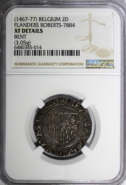 Belgium Flanders Charles the Bold of Burgundy (1467-77) Double Patard NGC XF DET