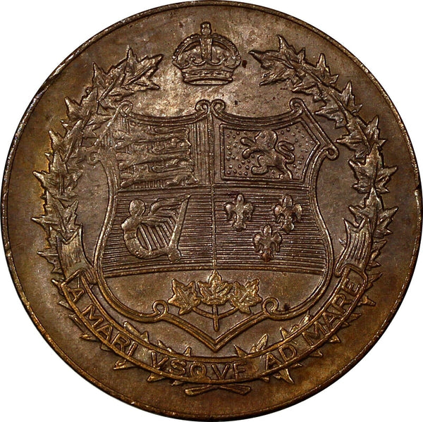 Reverse: A picture of the Canadian coat of arms (without the lion, horse,