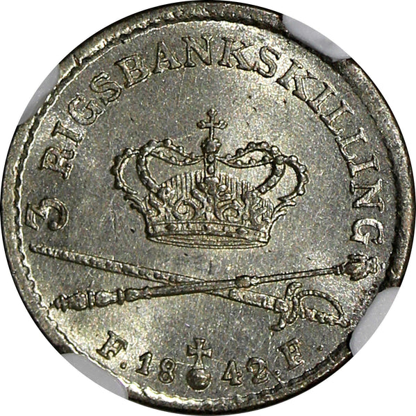 Denmark Christian VIII Silver 1842 K FF 3 Rigsbankskilling NGC MS64 KM# 729 (5)