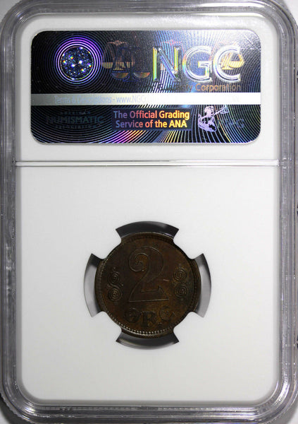 Denmark Christian X Bronze 1917 VBP GJ 2 Ore GRADED NGC MS63 BN LAST DATE FOR TYPE SCARCE WWI Issue KM# 813.1 Obverse: Crowned CX monogram, initials VBP and mint mark at lower left, date and initials GJ at lower right Reverse: Value, ornament flanking YOU WILL RECEIVED THE SAME COIN AS PICTURED. ALL COINS ARE AUTHENTIC AS DESCRIBED.
