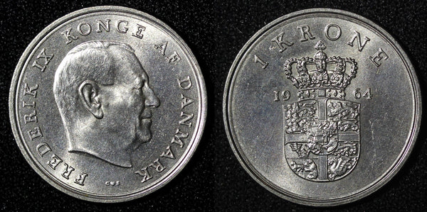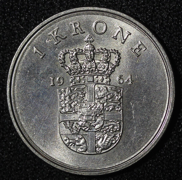 Denmark Frederik IX Copper-nickel 1964 CS 1 Krone 25.5 mm UNC/BU KM# 851.1 (7)