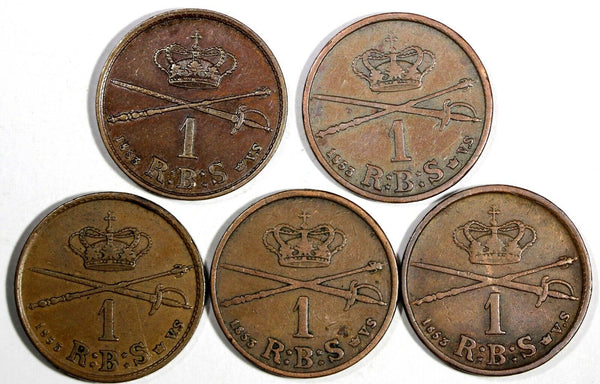 COPPER LOT OF 5 COINS 1853 1 Rigsbankskilling