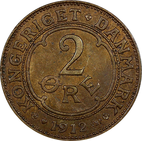 Denmark Frederik VIII Bronze 1912 VBP; GJ 2 Ore Choice XF KM# 805