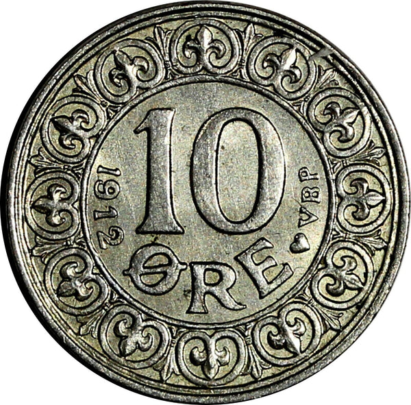 Denmark Frederik VIII Silver 1912 10 Ore LAST DATE Ch.UNC KM# 807(15 019)