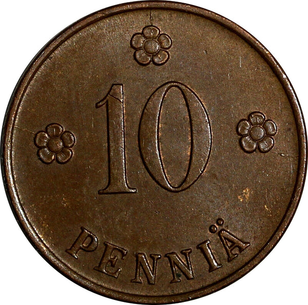 Finland Copper 1923 10 Pennia KEY DATE RARE Mintage-910,000 aUNC Condition KM# 24 Obverse: Coat of arms of Finland - a rampant lion left with the right foreleg replaced with an armoured hand brandishing a sword, trampling on a sabre with the hindpaws. Date divided by coat of arms. Engraver: Isak Gustaf Sundell Reverse: Denomination surrounded by three rosettes. 15 110 Please check out my other listings and we will be happy to combine in one package ! YOU WILL RECEIVED THE SAME COIN AS PICTURED. ALL COINS ARE AUTHENTIC AS DESCRIBED.