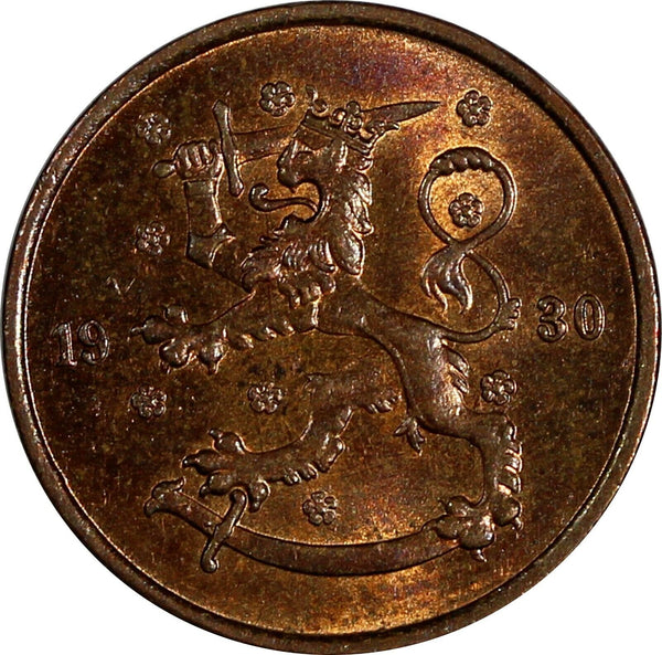 Finland Copper 1930 5 Penniä Better Date BU KM# 22 (20 209)
