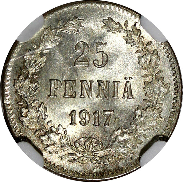 Finland Nicholas II 1917 S 25 Pennia NGC MS66 Grand Duchy KM# 6.2 (028)