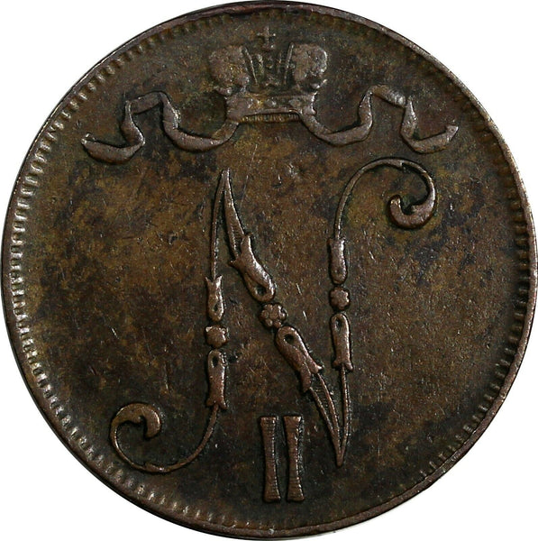 Finland Nicholas II Copper 1899 5 Penniä Mintage-860,000 KM# 15 (18 732)