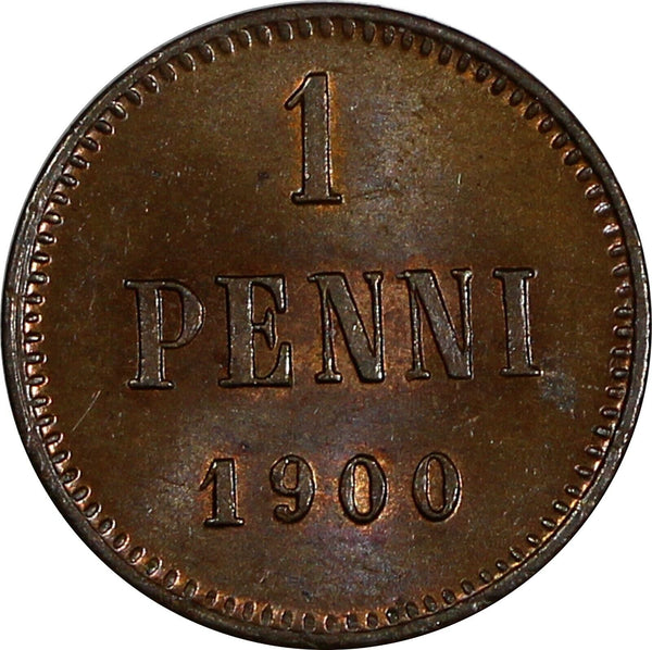 Finland Nicholas II Copper 1900 1 Penni UNC KM# 13 (432)