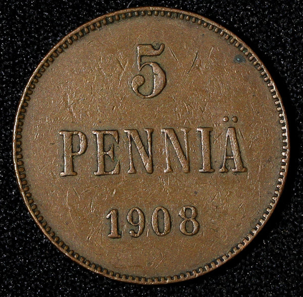 FINLAND Nicholas II Copper 1908 5 Penniä KM# 15 RANDOM PICK (1 COIN) (28 727)
