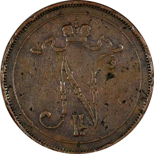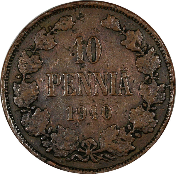 FINLAND Nicholas II Copper 1910 10 Penniä Low Mintage-241,000 RARE KM# 14 Obverse: Crowned monogram Reverse: Denomination and date within wreath YOU WILL RECEIVED THE SAME COIN AS PICTURED. ALL COINS ARE AUTHENTIC AS DESCRIBED. 10531