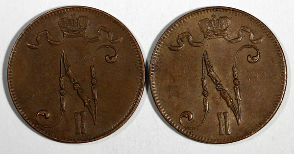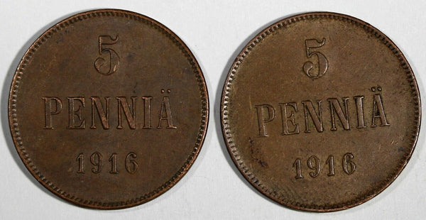 Finland Nicholas II Copper LOT OF 2 COINS 1916 5 Penniä KM# 15 (19 729)