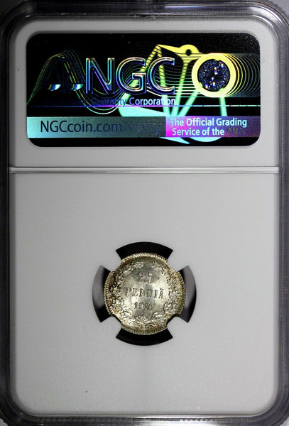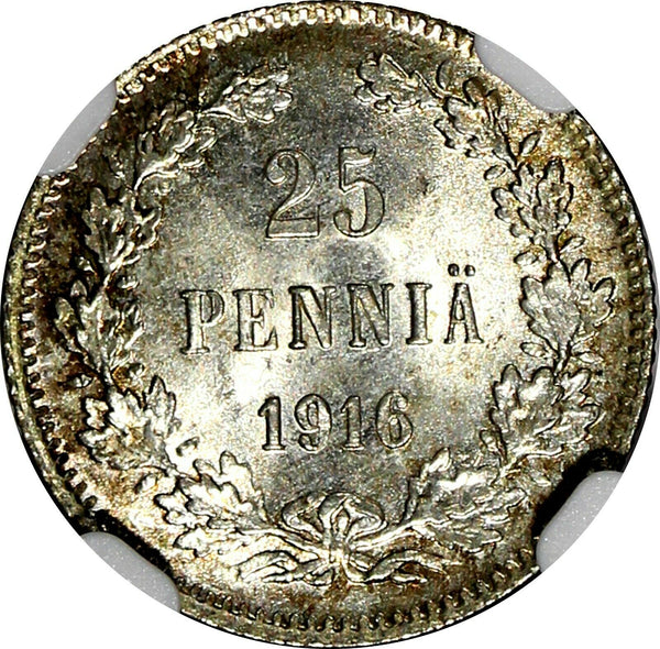 Finland Nicholas II Silver 1916 S 25 Pennia NGC MS67 GEM BU KM #6.2 (027)