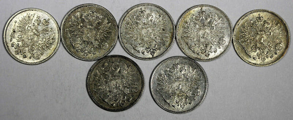 Finland Nicholas II Silver LOT OF 7 COINS 1909 L 25 Penniä KM# 6.2 (19 766)