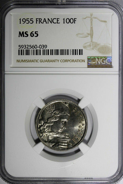 France 1955 100 Francs NGC MS65 TOP GRADED BY NGC KM# 919.1 (039)