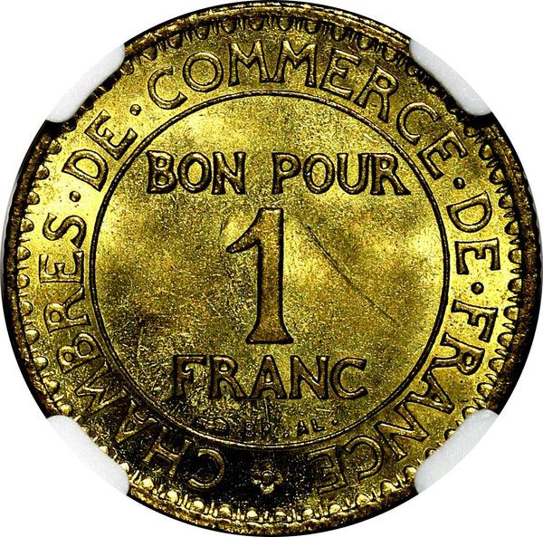 FRANCE Aluminum-Bronze 1923 1 Franc NGC MS64 GAD-468 KM# 876 (062)