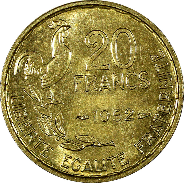 Aluminum-Bronze 1952 20 Francs 4 plumes