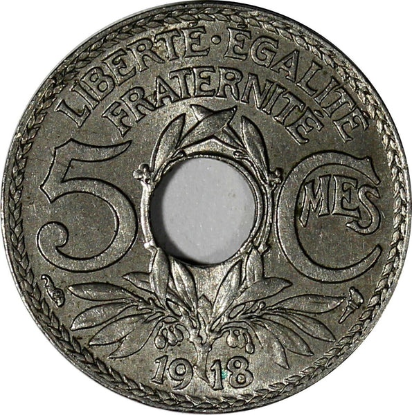 France Copper-Nickel 1918 5 Centimes UNC KM# 865a (20 005)