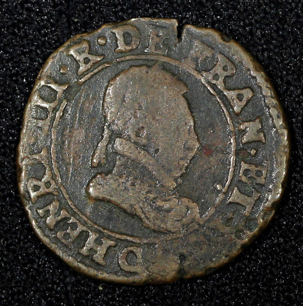 FRANCE Henri III (1574-1589) Copper 1580 Denier Tournois 2,59g. (27 181)