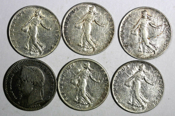 LOT OF 6 SILVER COINS 1866-1920 50 Centimes