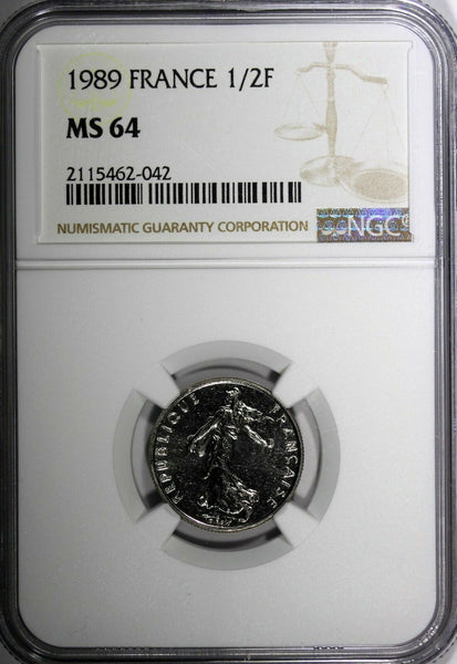 France Nickel 1989 1/2 Franc NGC MS64 TOP GRADED BY NGC KM# 931.1 (042)