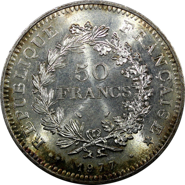 France Silver 1977 50 Francs "Hercules" UNC Toned Mint Luster KM# 941.1 (128)