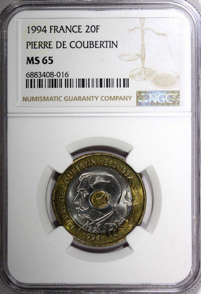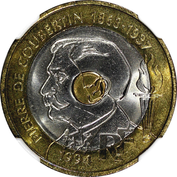Tri-Metallic 1994 20 Francs Pierre de Coubertin