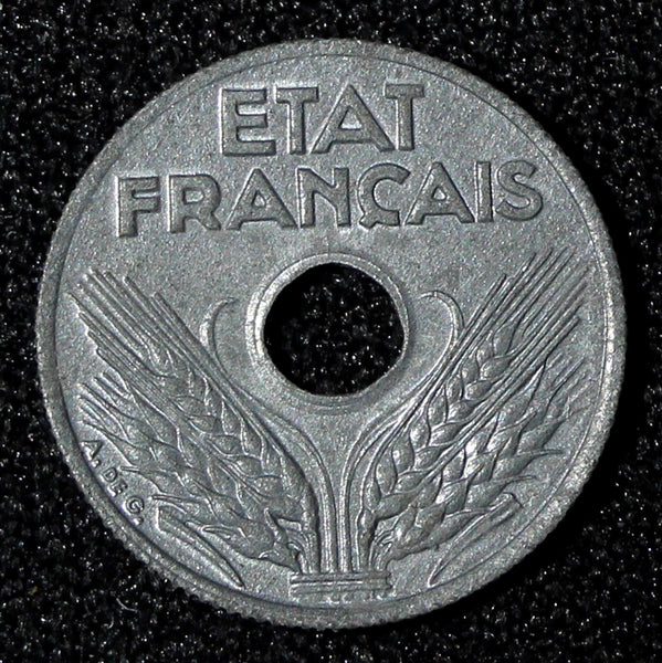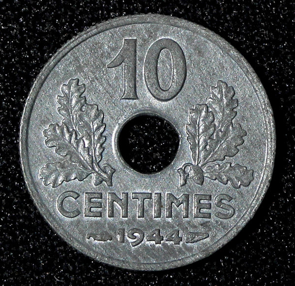 Reverse: Center hole divides denomination, oak leaves flank, date below