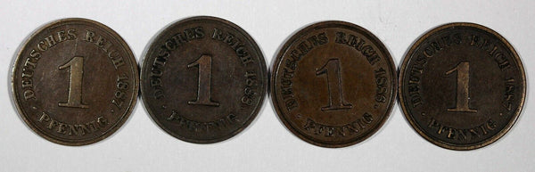 1886 A,1887 F ,1887 D ,1888 E 1 Pfennig