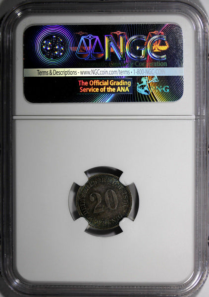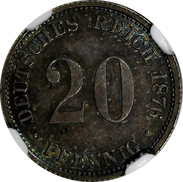 Germany - Empire Wilhelm I Silver 1876 D 20 Pfennig GRADED NGC MS64 NICE RAINBOW TONING Munich Mint KM# 5Obverse: Imperial eagle, mintmarks below.Reverse"Lettering: DEUTSCHES REICH 20 PFENNIG 1876 Engraver: Friedrich Wilhelm Kullrich YOU WILL RECEIVED THE SAME COIN AS PICTURED. ALL COINS ARE AUTHENTIC AS DESCRIBED.