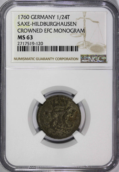 GERMANY SAXE-HILDBURGHAUSEN 1760 1/24 Thaler NGC MS63 TOP GRADED KM# 50 (120)