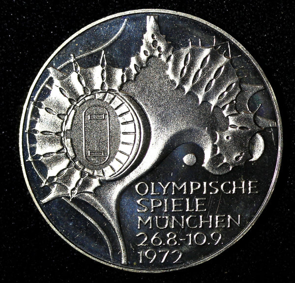 Reverse : Illustration of the Munich Olympic Stadium, as seen from above. The event and issuing date.