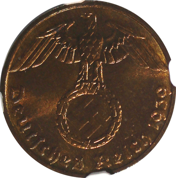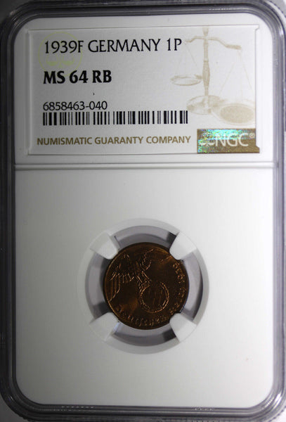 Germany-Third Reich Bronze 1939 F 1 Reichspfennig NGC MS64 RB KM# 89 (040)