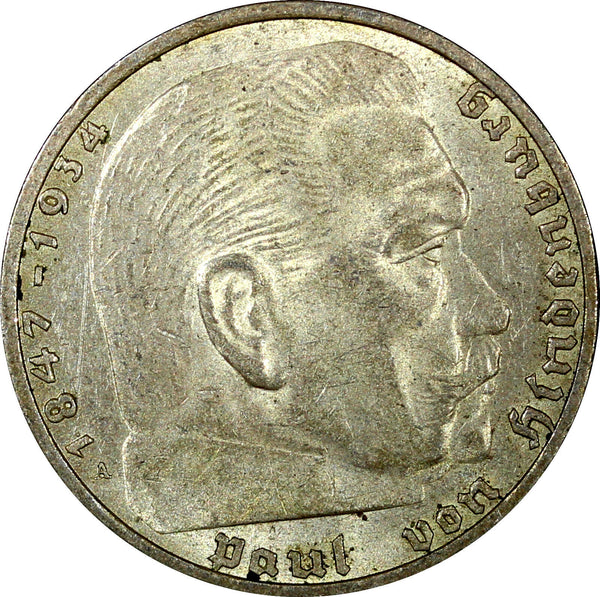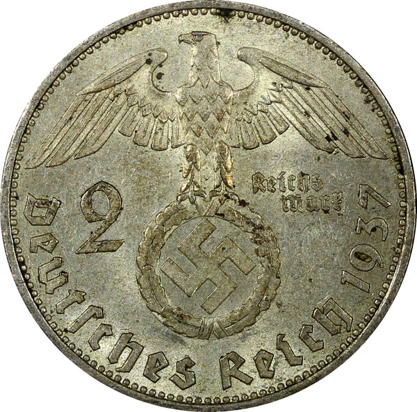Germany - Third Reich Silver 1937 A 2 Reichs Mark Hindenburg KM# 93 (22 295)