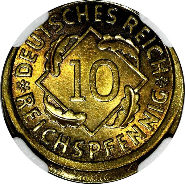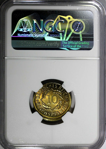Germany-Weimar Republic 1936 A 10 Reichspfennig NGC MINT ERROR MS64 KM# 40