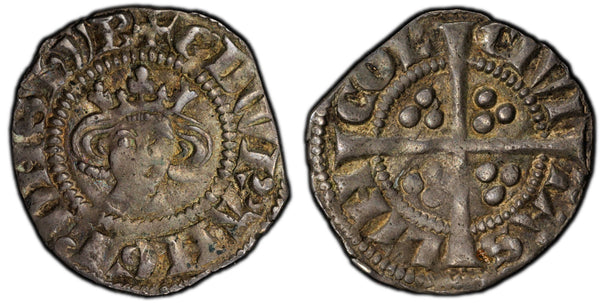 Reverse: Long cross pattée, trefoil of pellets in angles, mint name around.