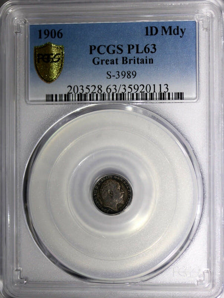 Great Britain Edward VII Silver 1906 1 Penny GRADED PCGS PL63 PROOFLIKE TONED MINTAGE-19,000 KM#795 Obverse: Head right Reverse: Crowned denomination divides date within oak wreath Reverse: Crowned denomination divides date within oak wreath Please check out my other listings and we will be happy to combine in one package ! YOU WILL RECEIVED THE SAME COIN AS PICTURED. ALL COINS ARE AUTHENTIC AS DESCRIBED.