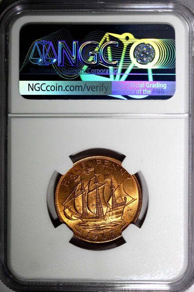 GREAT BRITAIN Elizabeth II 1967 1/2 Penny NGC MS63 RD FULL RED TONING KM# 896(4)