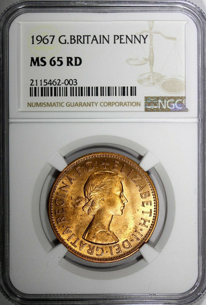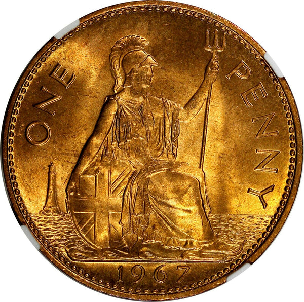 Great Britain Elizabeth II Bronze 1967 1 Penny NGC MS65 RD RED BU KM# 897 (03)