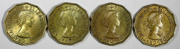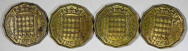 Great Britain Elizabeth II LOT OF 4 COINS 1964 3 Pence KM# 900 (20 272)