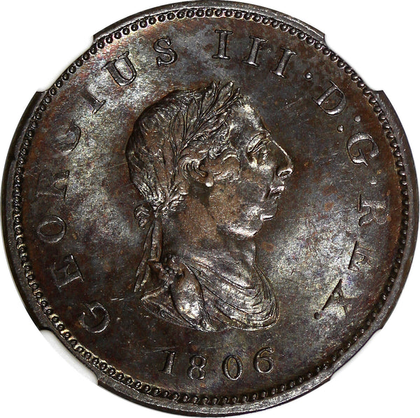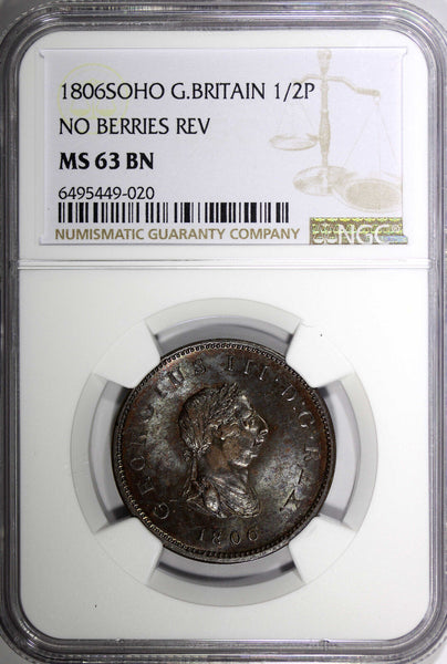 Great Britain George III Copper 1806 1/2 Penny Soho NGC MS63 BN KM# 662 (20)