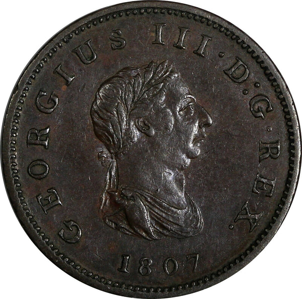 Great Britain George III Copper 1807 1/2 Penny SOHO Mint XF KM# 662 (19 966)