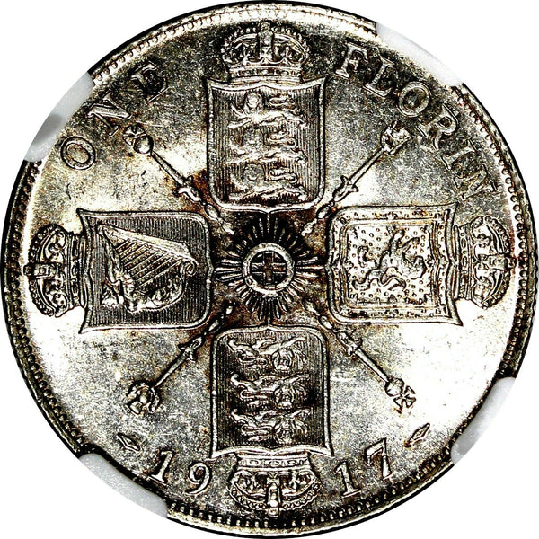 GREAT BRITAIN George V (1910-1936) Silver 1917 1 FLORIN 2 Shillings GRADED NGC AU58 WWI Struck KM# 817 S-4013 Diameter: 28.3mm Obverse: Head left Obverse Designer: Bertram MacKennal Reverse: Cross of crowned shield, sceptres in angles Edge Description: Reeded Please check out my other listings and we will be happy to combine in one package ! YOU WILL RECEIVED THE SAME COIN AS PICTURED. ALL COINS ARE AUTHENTIC AS DESCRIBED.