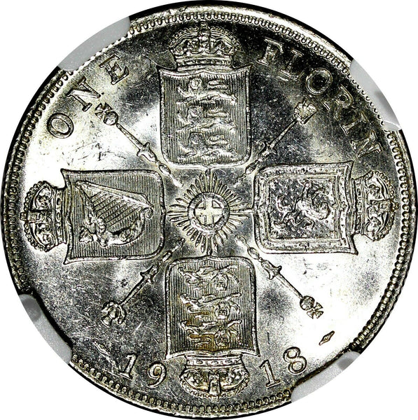 GREAT BRITAIN George V (1910-1936) Silver 1918 1 FLORIN 2 Shillings GRADED NGC MS61 WWI Struck.SCARCE DATE KM# 817 S-4013 Diameter: 28.3mm Obverse: Head left Obverse Designer: Bertram MacKennal Reverse: Cross of crowned shield, sceptres in angles Edge Description: Reeded. Please check out my other listings and we will be happy to combine in one package ! YOU WILL RECEIVED THE SAME COIN AS PICTURED. ALL COINS ARE AUTHENTIC AS DESCRIBED.