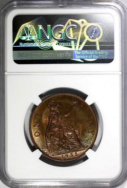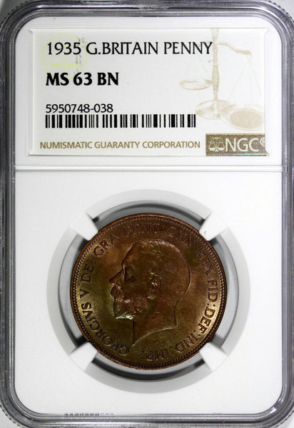GREAT BRITAIN George V Bronze 1935 1 Penny NGC MS63 BN NICE TONING KM# 838 (038)