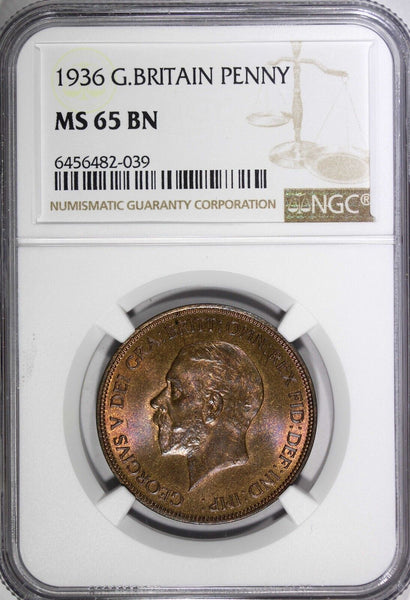 GREAT BRITAIN George V Bronze 1936 1 Penny NGC MS65 BN NICE KM# 838 (039)