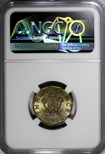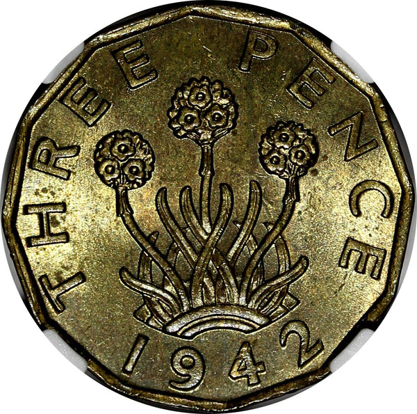 Great Britain George VI 1942 3 Pence WWII Issue NGC MS65 TOP GRADED KM# 849 (43)