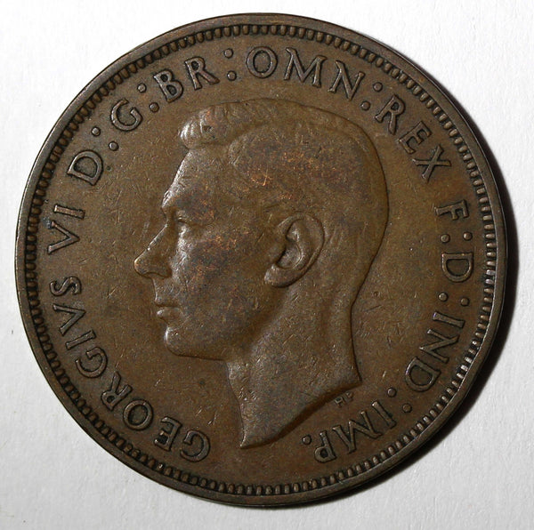 Obverse: Uncrowned portrait of King George VI left, legend around.
