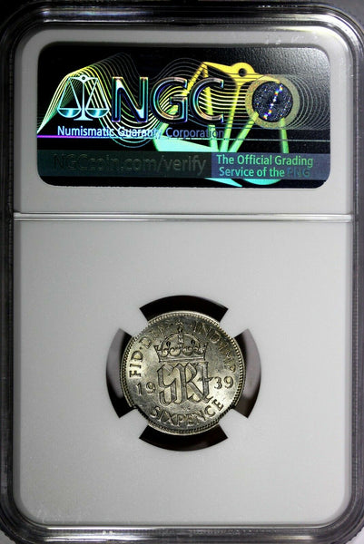 GREAT BRITAIN George VI Silver 1939 6 Pence GRADED NGC AU58 KM# 852 Obverse: Head left Obverse Designer: T. H. Paget Reverse: Crowned monogram divides date Reverse Designer: George Krueger-Gray Edge Description: Reeded Please check out my other listings and we will be happy to combine in one package ! YOU WILL RECEIVED THE SAME COIN AS PICTURED. ALL COINS ARE AUTHENTIC AS DESCRIBED.