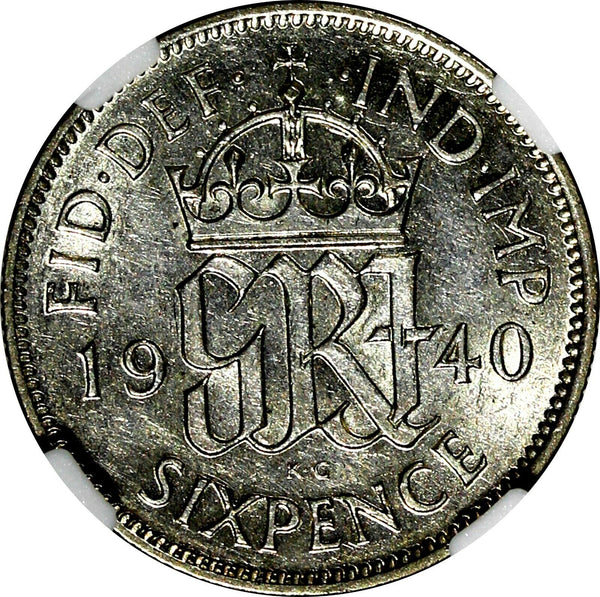 GREAT BRITAIN George VI Silver 1940 6 Pence GRADED NGC AU55 KM# 852 Obverse: Head left Obverse Designer: T. H. Paget Reverse: Crowned monogram divides date Reverse Designer: George Krueger-Gray Edge Description: Reeded Please check out my other listings and we will be happy to combine in one package ! YOU WILL RECEIVED THE SAME COIN AS PICTURED. ALL COINS ARE AUTHENTIC AS DESCRIBED.